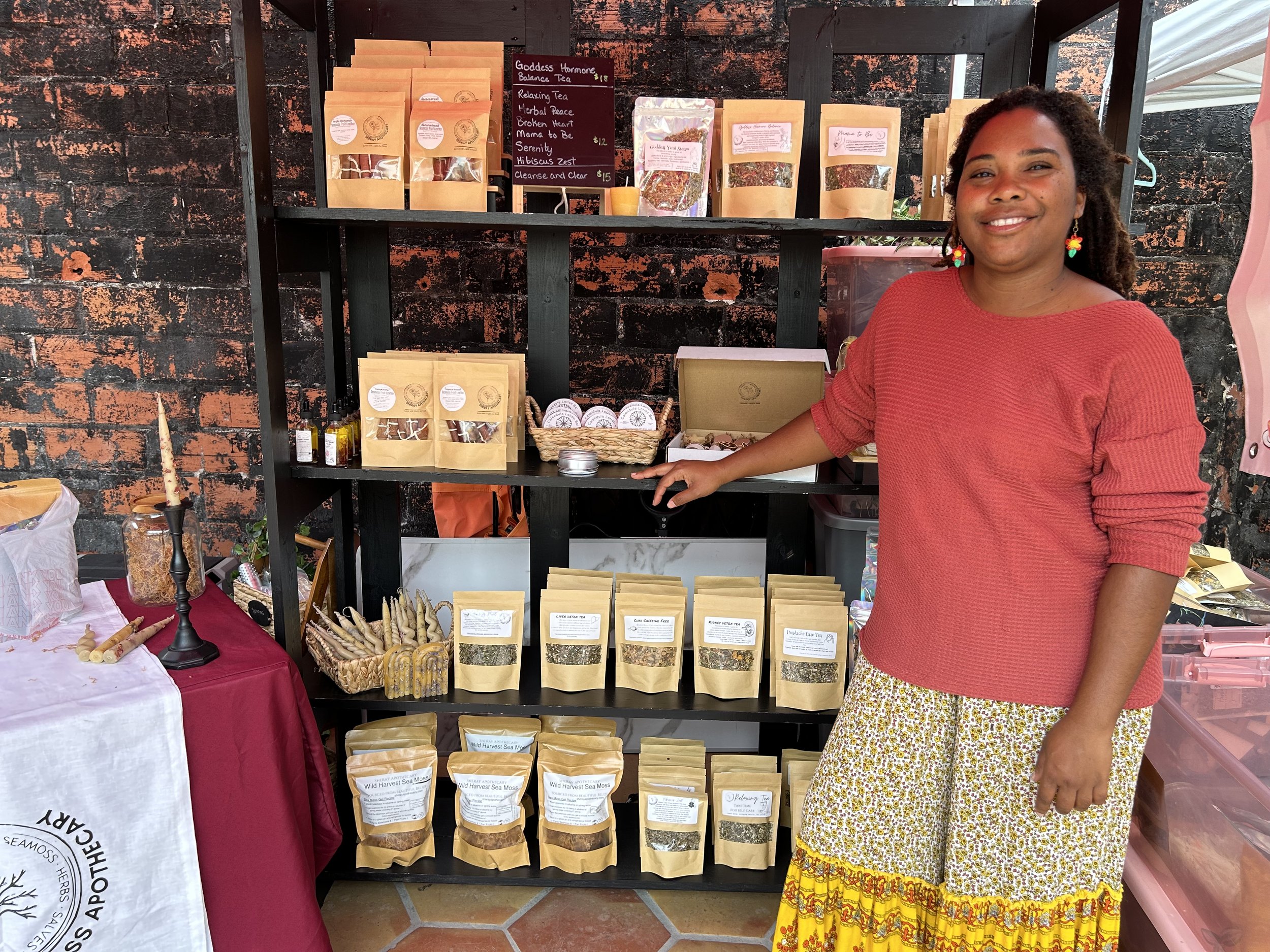 Sheray’s crafted Herbal Teas, Salves moisturizers, Tinctures and Wild Harvested SeaMoss are famous at local Farmers Markets around here. She is a Herbalist with experience making blends of teas like “Enchanted Slumber” -A soothing blend to fight off Insomnia , try it with Lavender infused Raw Honey for a delicious hot tea!!